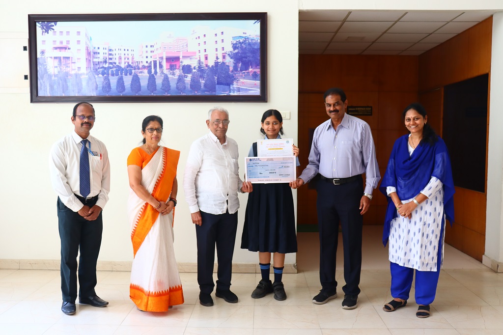In this competition, Sreshta Kamalapuram of class IX won the first position in Telangana State out of the top 50 selected students in the state in Group B category. She was awarded a merit certificate, Rs.50000/ cash prize as well as a participation incentive of Rs:2000/. She also received gifts worth Rs.1500/. She will be participating in the Nationals on 11 December 2025, in New Delhi.
