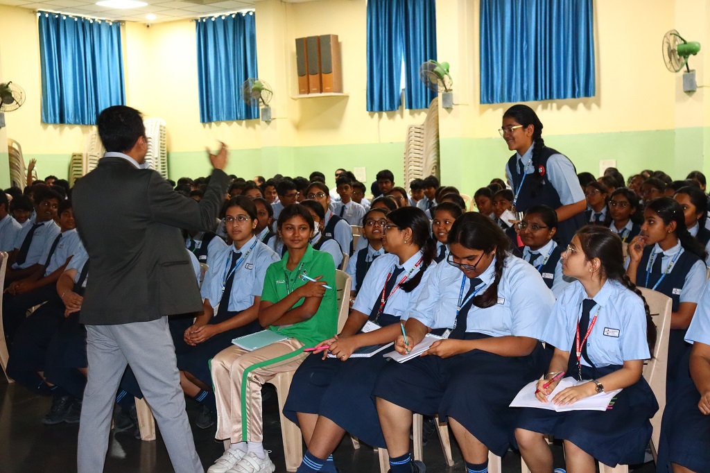 The counselor highlighted the importance of early planning and explored the concept of interdisciplinary careers, aligning with future career trends under the theme "Careers 2025". Students were introduced to the various challenges in career planning and were guided on how to identify and overcome them. Emphasis was placed on understanding the difference between hobbies, passion, and profession, and how these play a role in choosing a suitable career.