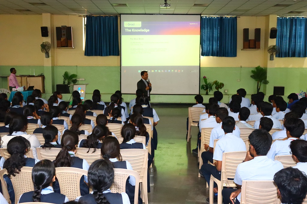 The session focused on the process of executing business ideas and emphasized the importance of critical analysis before implementation. The students were asked to work on areas they are passionate about and to start thinking about which problems in the world they would like to solve. Students were also informed about how GradCircle works and how its programs support them in transforming ideas into real-world applications with guidance from experienced mentors. Information in building AI-based courses, offering career labs and short-term experiential programs in Bangalore and Malaysia, including 10-day programs and internship opportunities were also shared with the students.