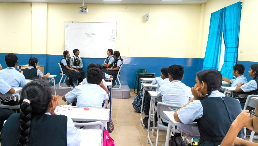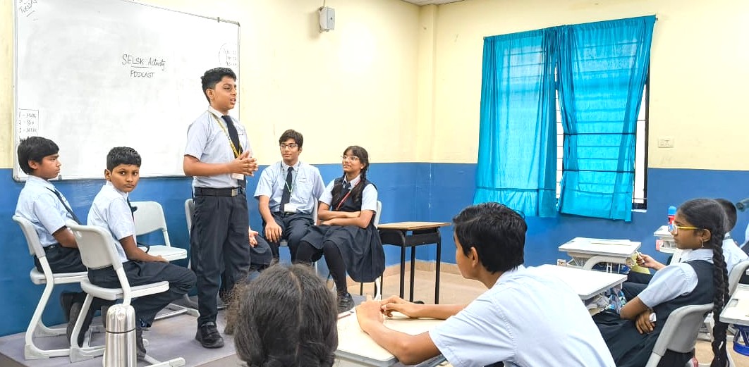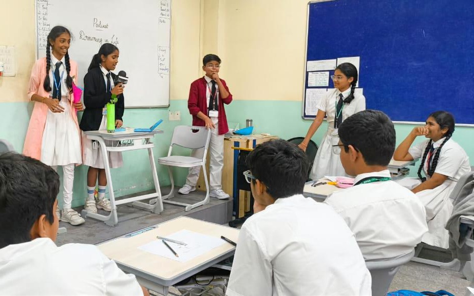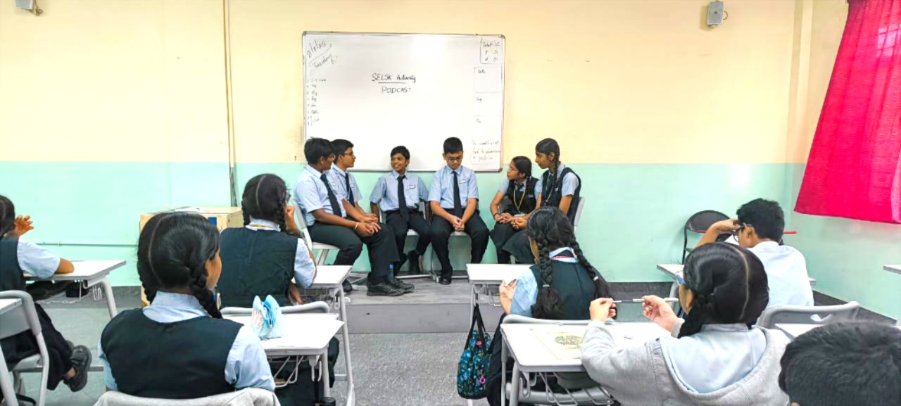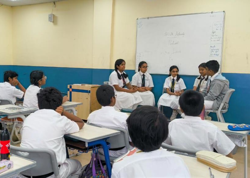 The students of Class VIII participated in a podcast activity where they imagined and spoke about their future selves. This activity encouraged self-awareness and self-reflection, helping students explore their personal goals, values, and strengths. Additionally, they took part in the Hot Cross Bun activity, which focused on understanding the connection between thoughts, emotions, physical state, and behaviour. This activity promoted emotional awareness and a better understanding of the mind-body connection.