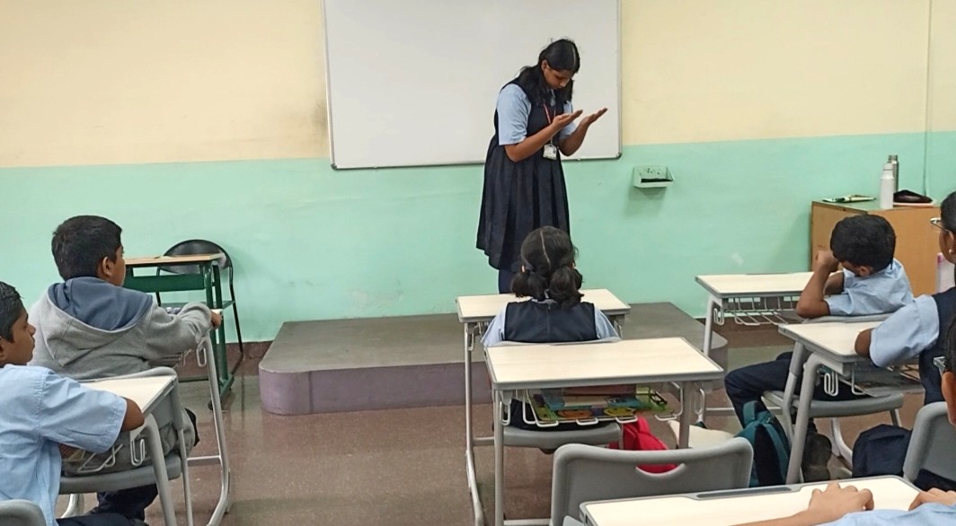 The students engaged in mime activity to recreate any one of their daily interactions with family, friends, and peers. This helped them observe and reflect on different behaviours and emotions. Through these performances, they developed a better understanding of how their own behaviour impacts others. Other than this, they also took part in an art-integrated activity where they drew a superhero character, they felt shared similar traits with themselves. This creative exercise encouraged them to think deeply about their own strengths, values, and unique qualities.