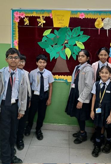 The Language Tree Display activity encouraged students to celebrate linguistic diversity by writing words from their mother tongues on leaf-shaped paper cutouts. These colourful leaves symbolized the branches of India’s linguistic heritage.