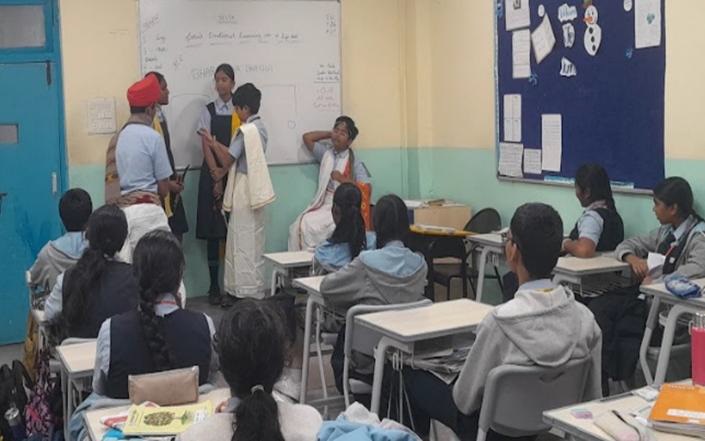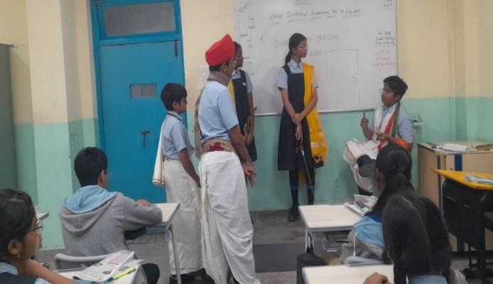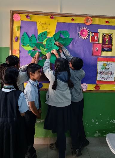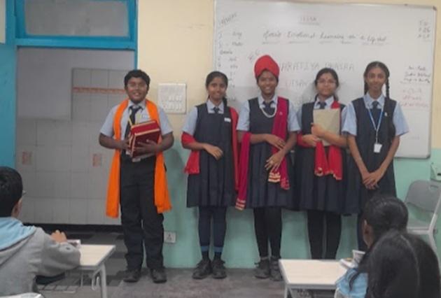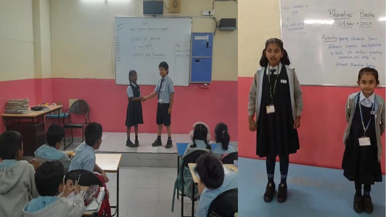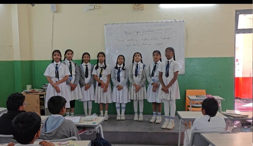 Teachers paired students from diverse linguistic backgrounds to exchange greetings, proverbs, and everyday expressions in their respective Bharatiya Bhasha. The activity not only built linguistic awareness but also strengthened interpersonal connections. Apart from this, the students also wrote proverbs in their mother tongues as they shared them with the rest of the class.