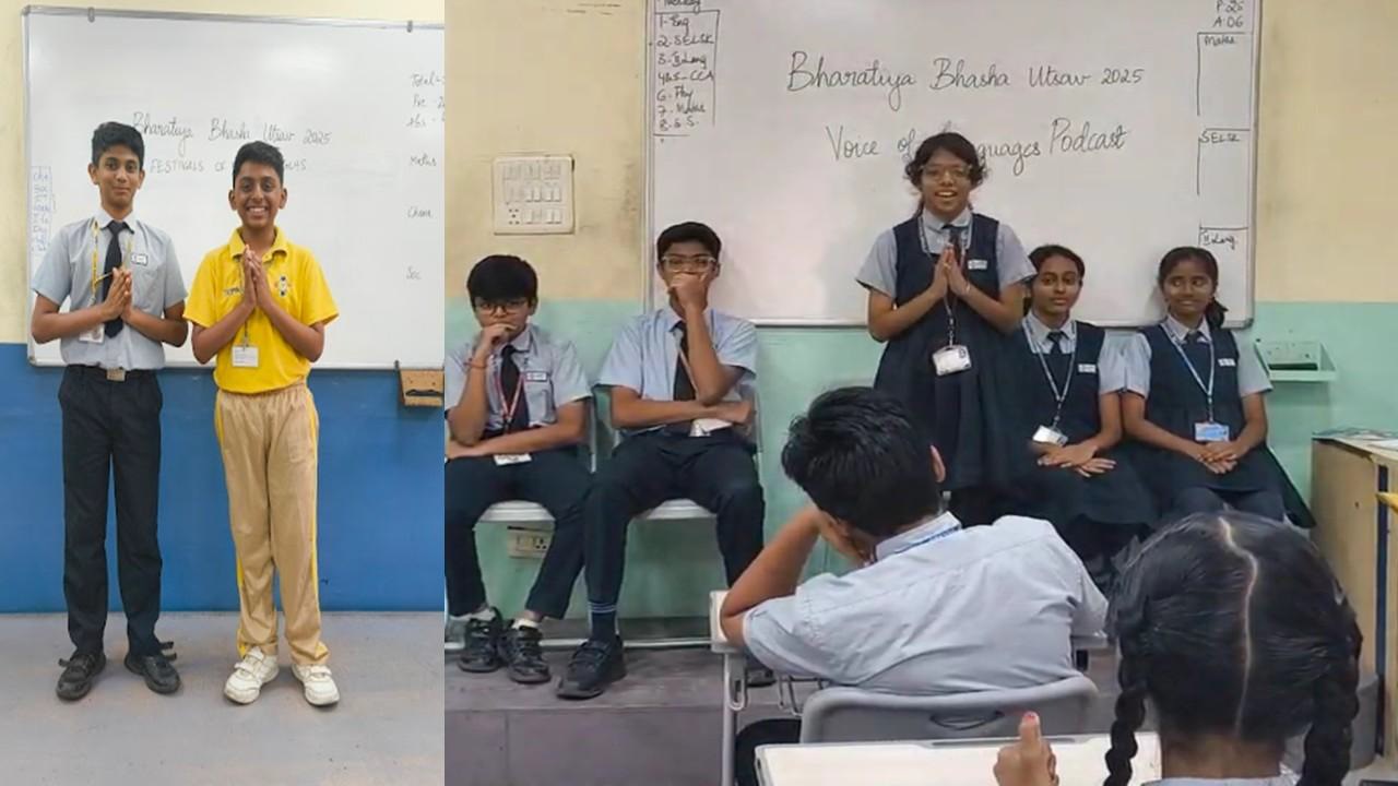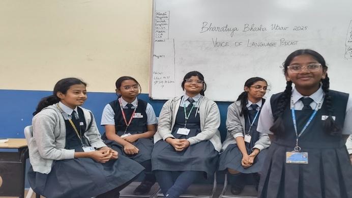 Students explored the linguistic roots of various Indian festivals, sharing short introductions about customs, rituals, and traditions. They highlighted how festivals like Pongal, Durga Puja, and Rath Yatra are deeply connected to regional dialects and expressions. Additionally, students recorded podcasts in different Bharatiya Bhasha, presenting proverbs from their regions.