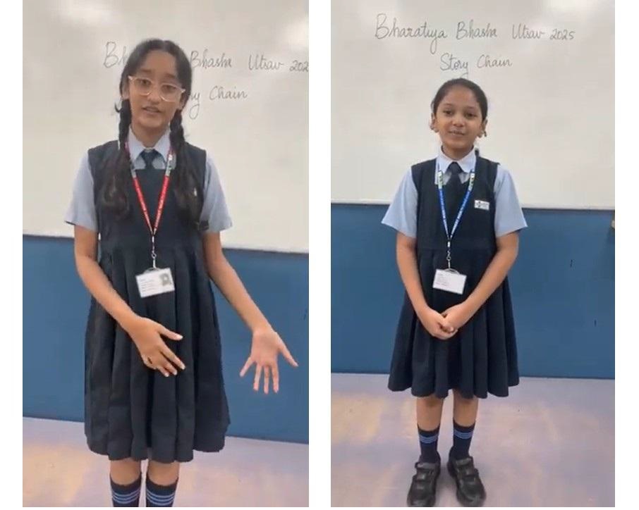 Students participated in a creative storytelling chain using Panchatantra tales. One student began narrating a story in a particular Bharatiya Bhasha, and others continued the tale in different languages.
