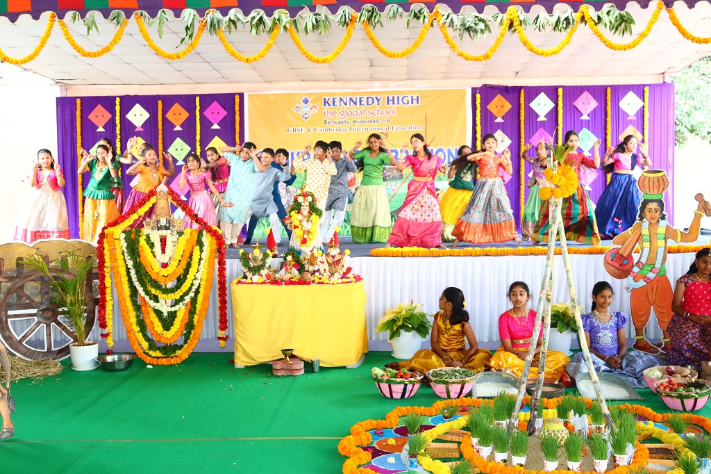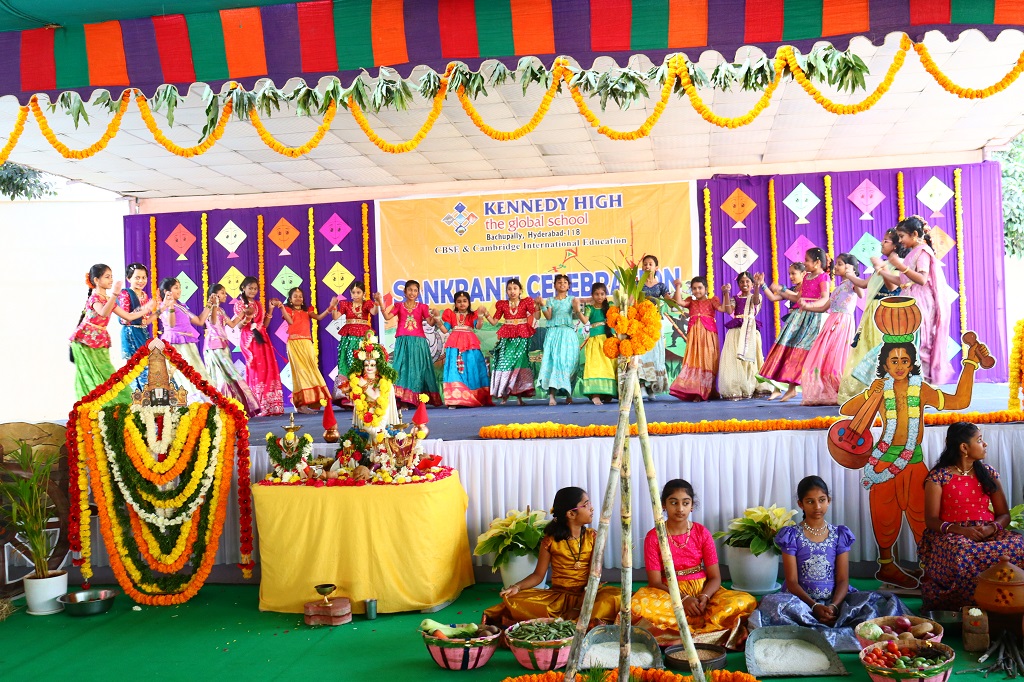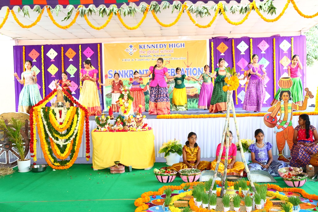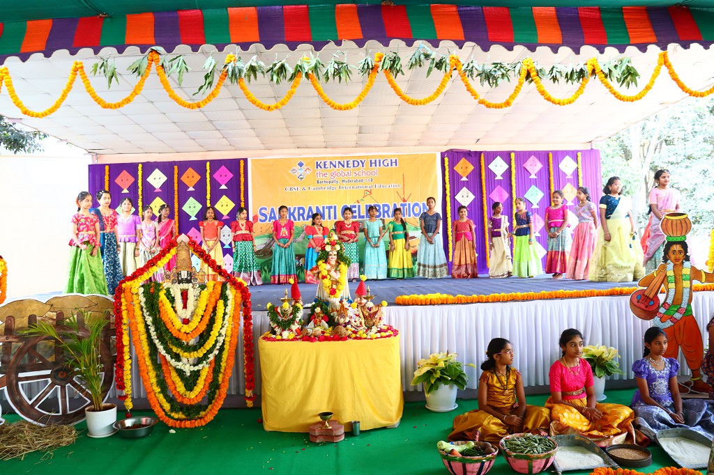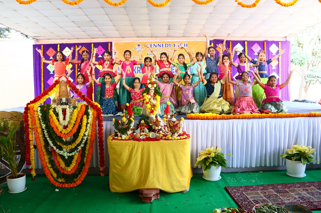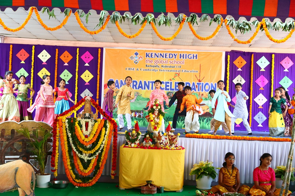 Sankranti at KENNEDY HIGH the global school was celebrated on Friday, 09 January 2026, transforming the campus into a lively rural landscape, beautifully reflecting the warmth, colour, and spirit of India’s rich cultural heritage. The entire school resonated with festive cheer as students & staff came together to celebrate the harvest festival in its most authentic form.
