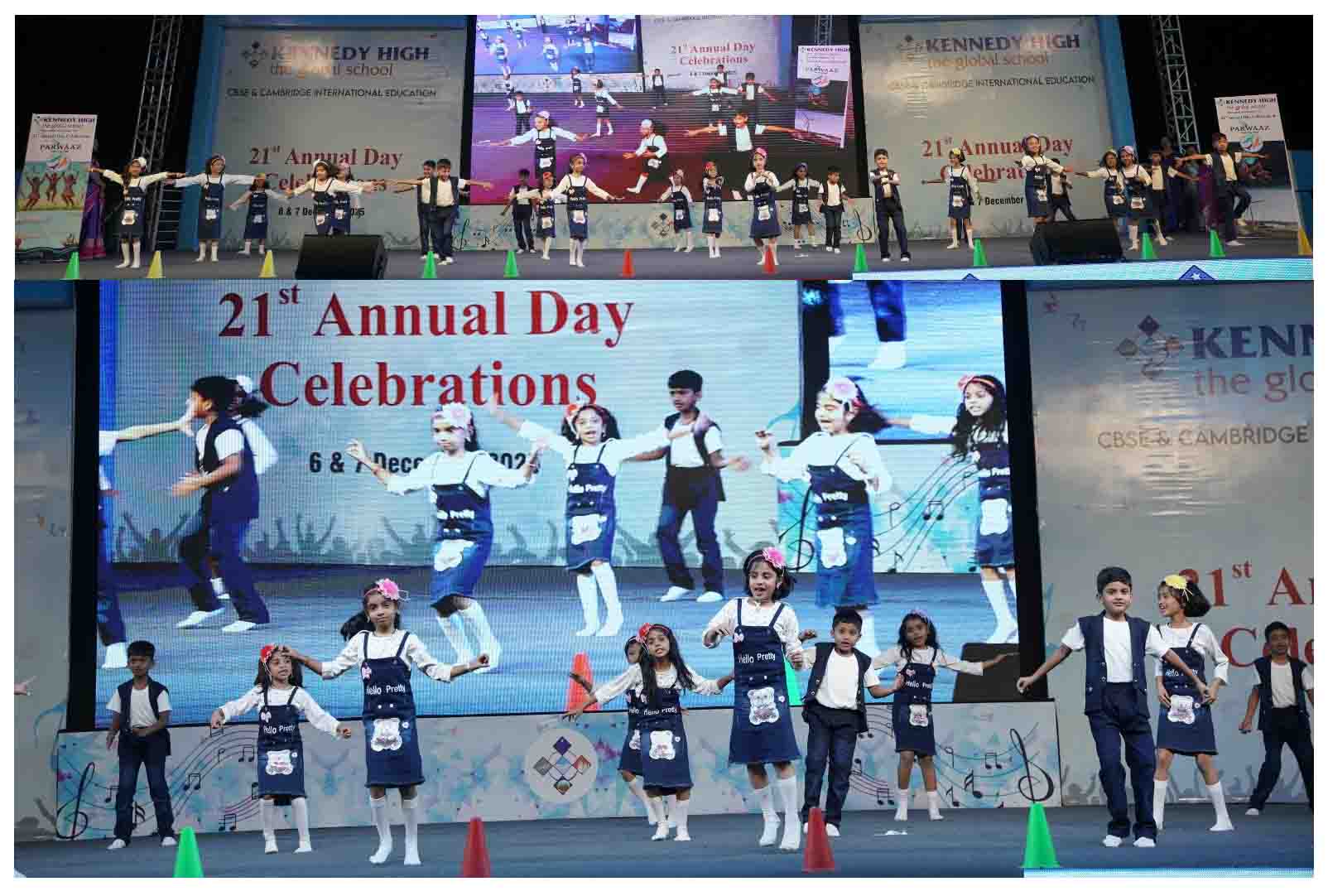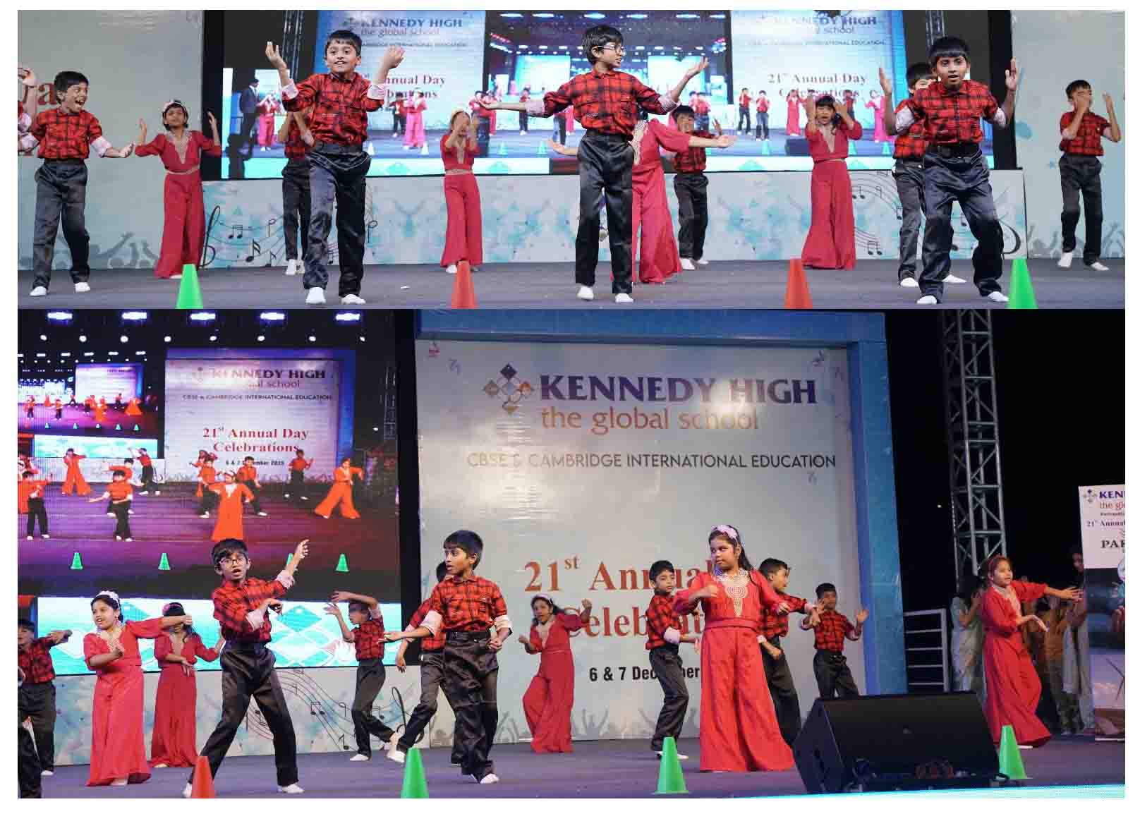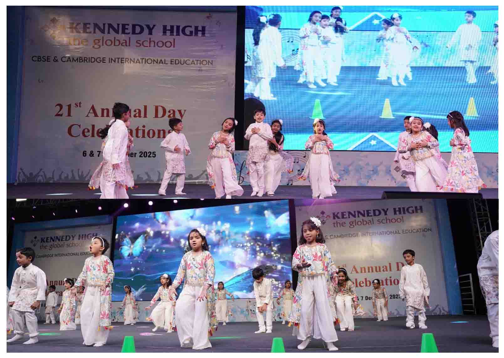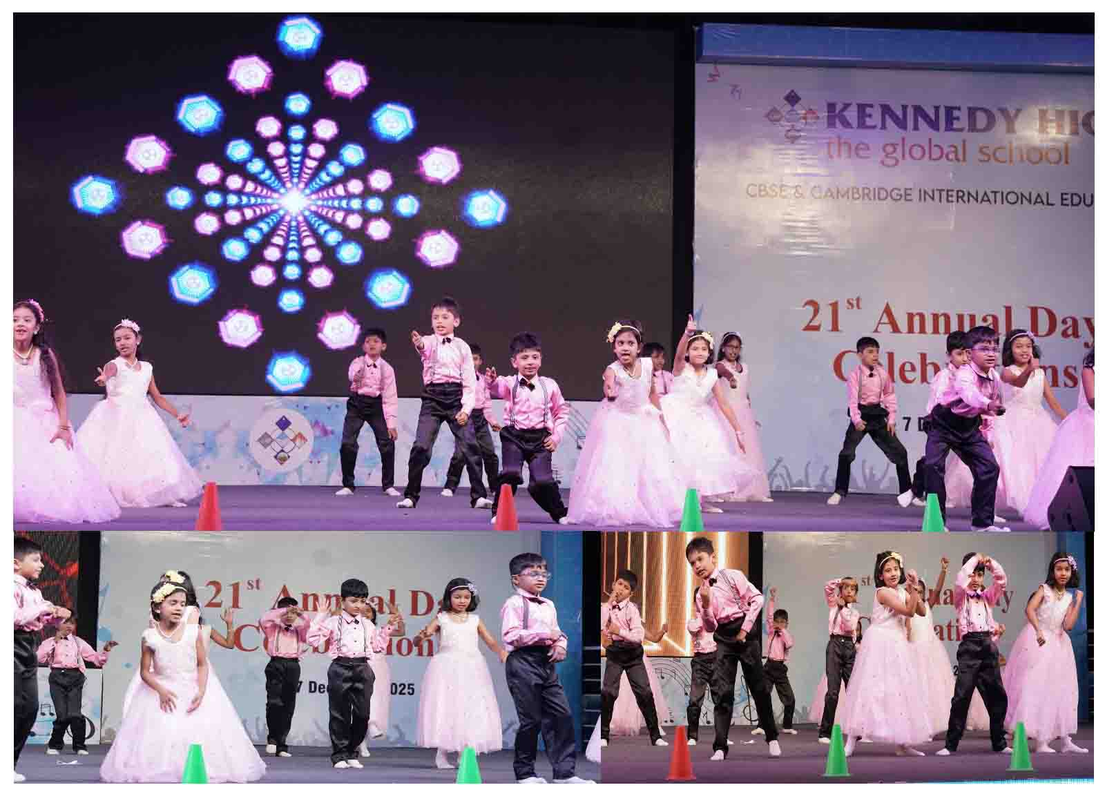 On 7 December, 2025 the students of KENNEDY HIGH the global school celebrated the 21st Annual Day with enthusiasm and zeal. The students of Pre-primary I && II along with the students of Classes I-III, CBSE and grades 1-3, Cambridge, participated whole heartedly in this grand event.