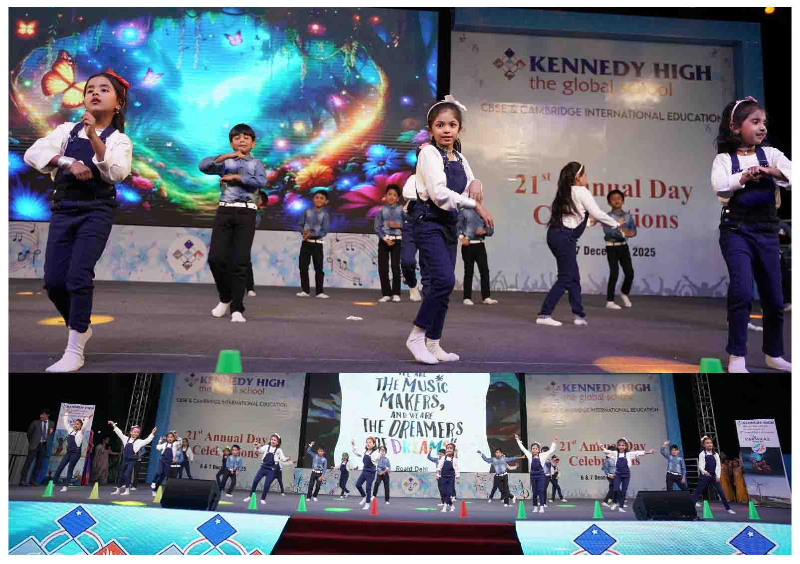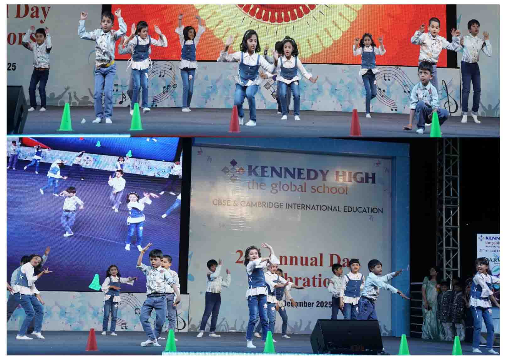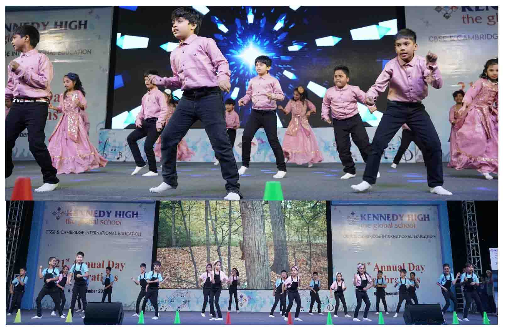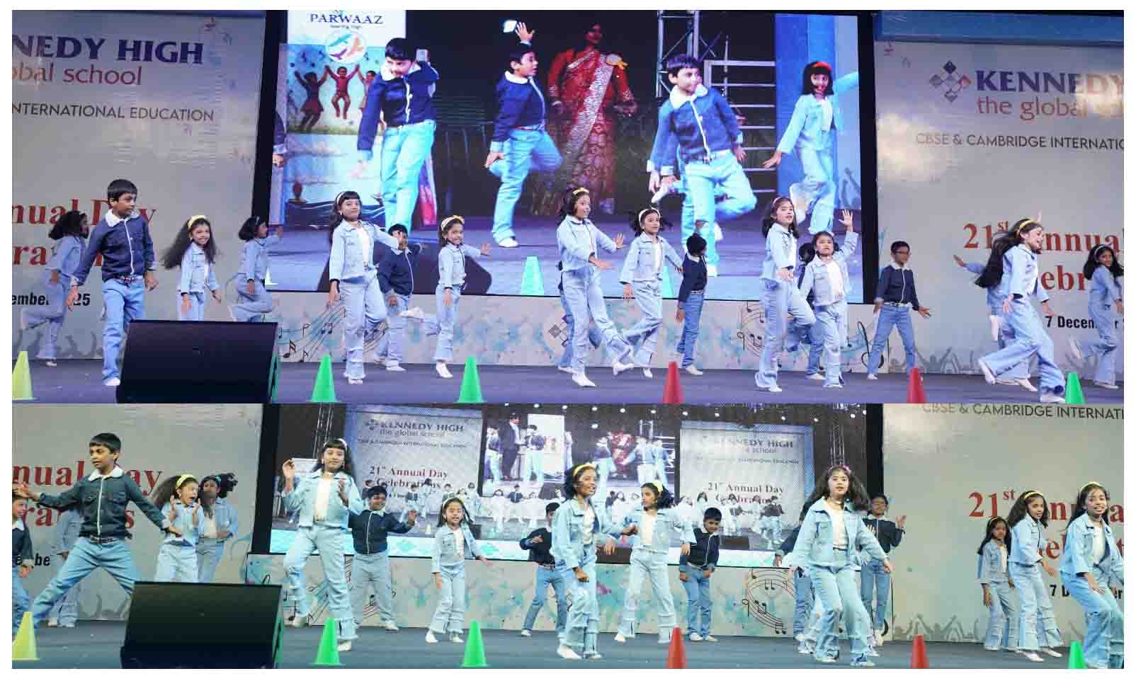 On 7 December, 2025 the students of KENNEDY HIGH the global school celebrated the 21st Annual Day with enthusiasm and zeal. The students of Pre-primary I && II along with the students of Classes I-III, CBSE and grades 1-3, Cambridge, participated whole heartedly in this grand event.