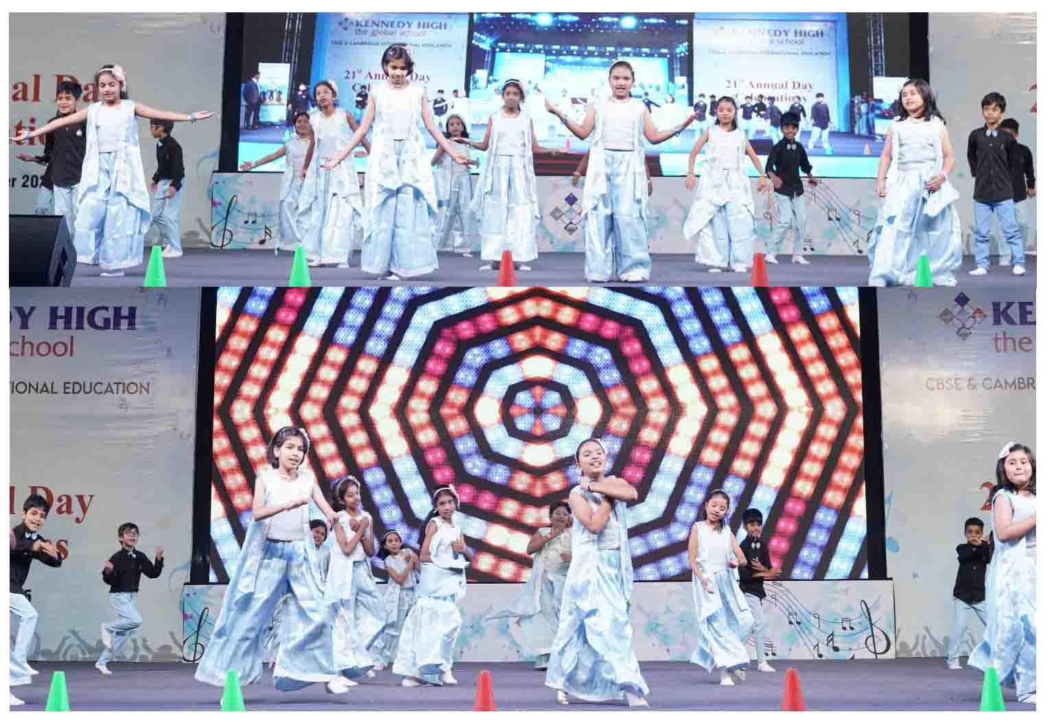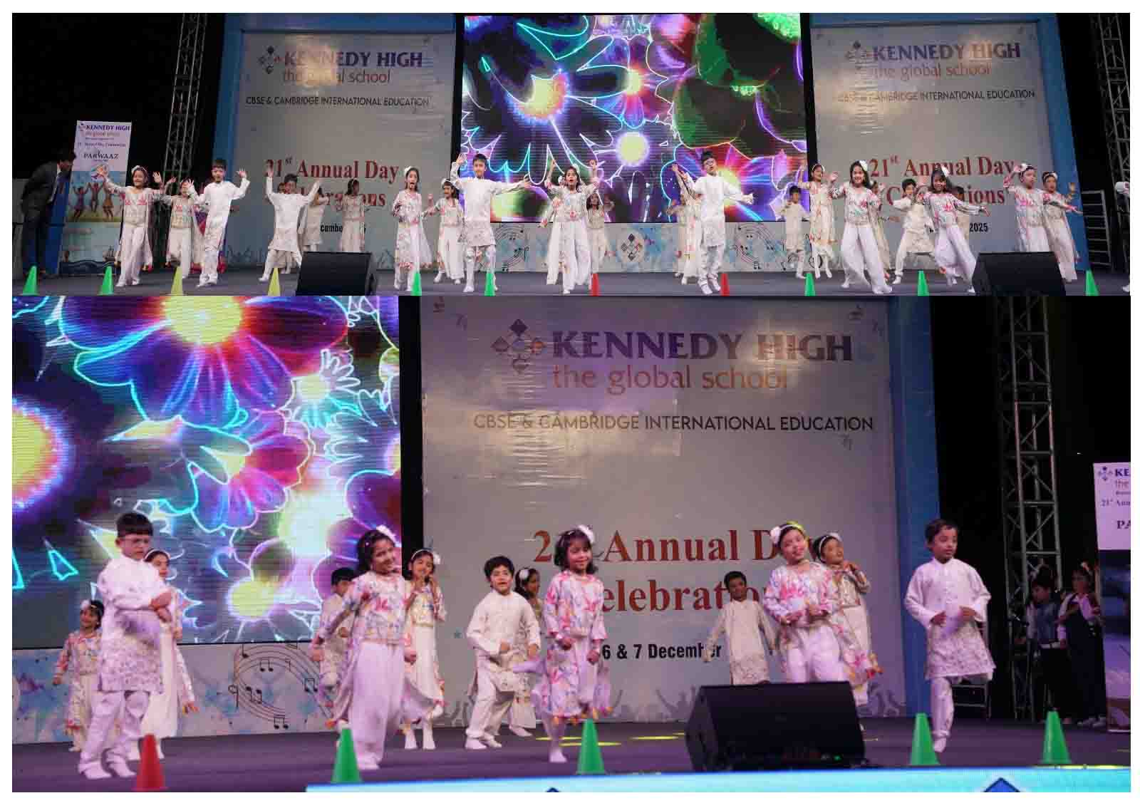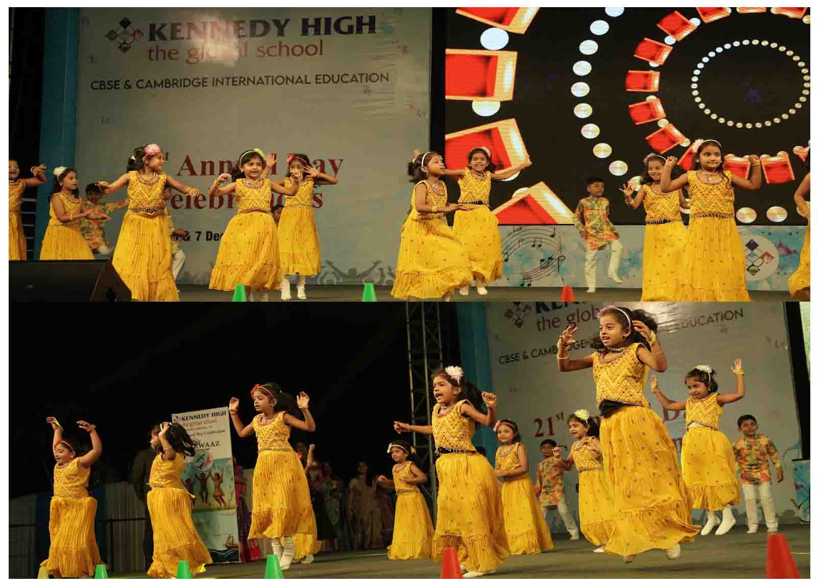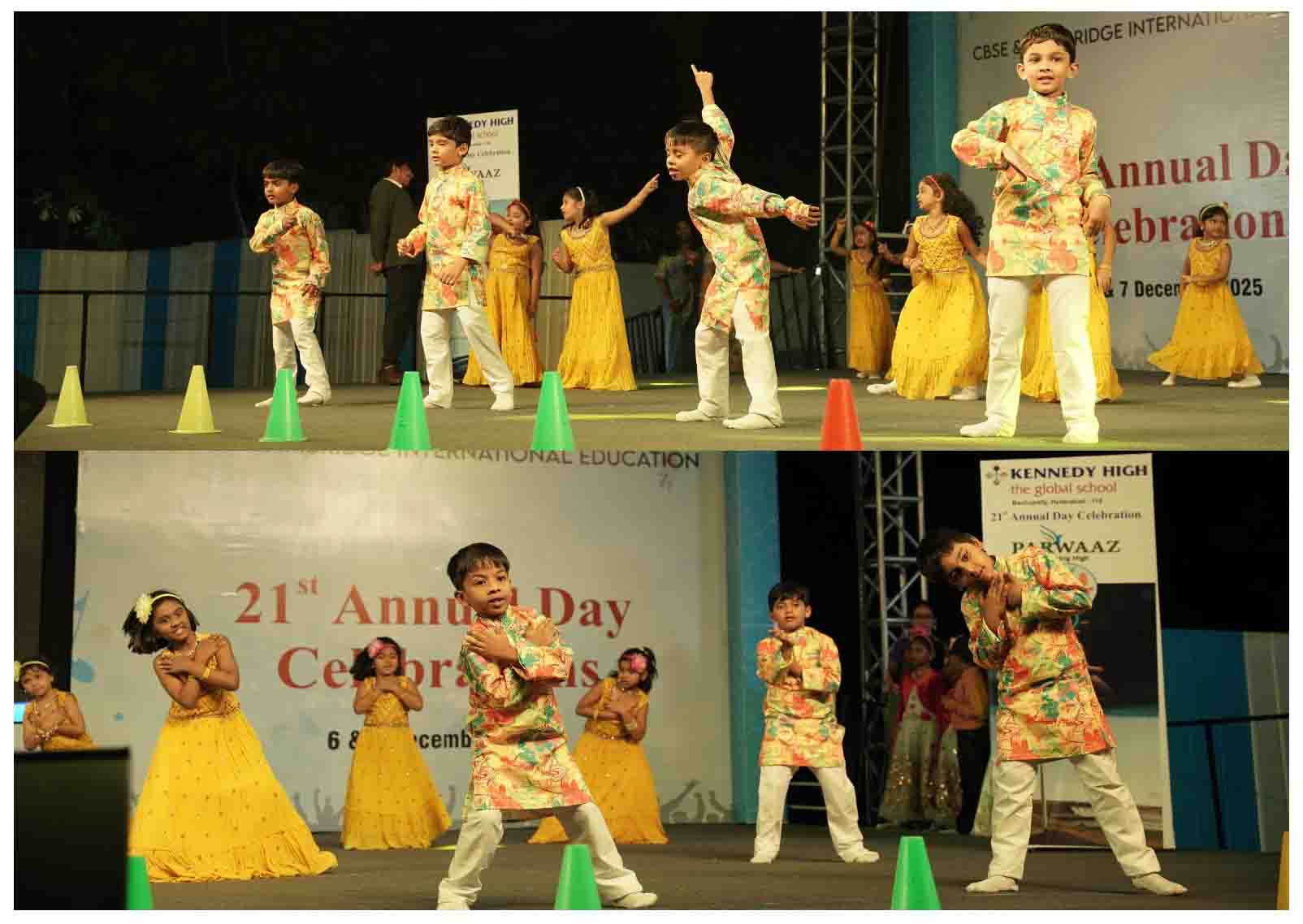 On 7 December, 2025 the students of KENNEDY HIGH the global school celebrated the 21st Annual Day with enthusiasm and zeal. The students of Pre-primary I && II along with the students of Classes I-III, CBSE and grades 1-3, Cambridge, participated whole heartedly in this grand event.