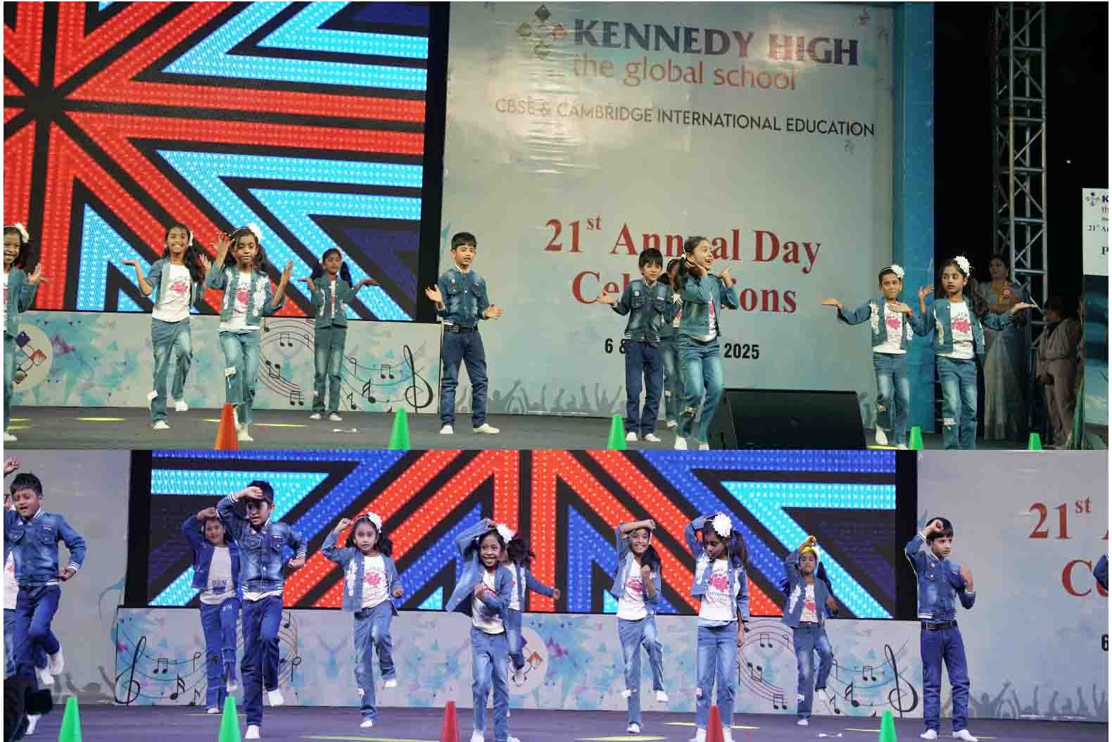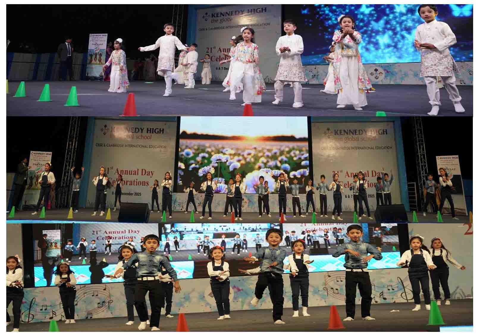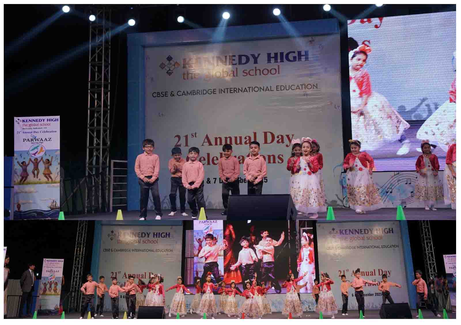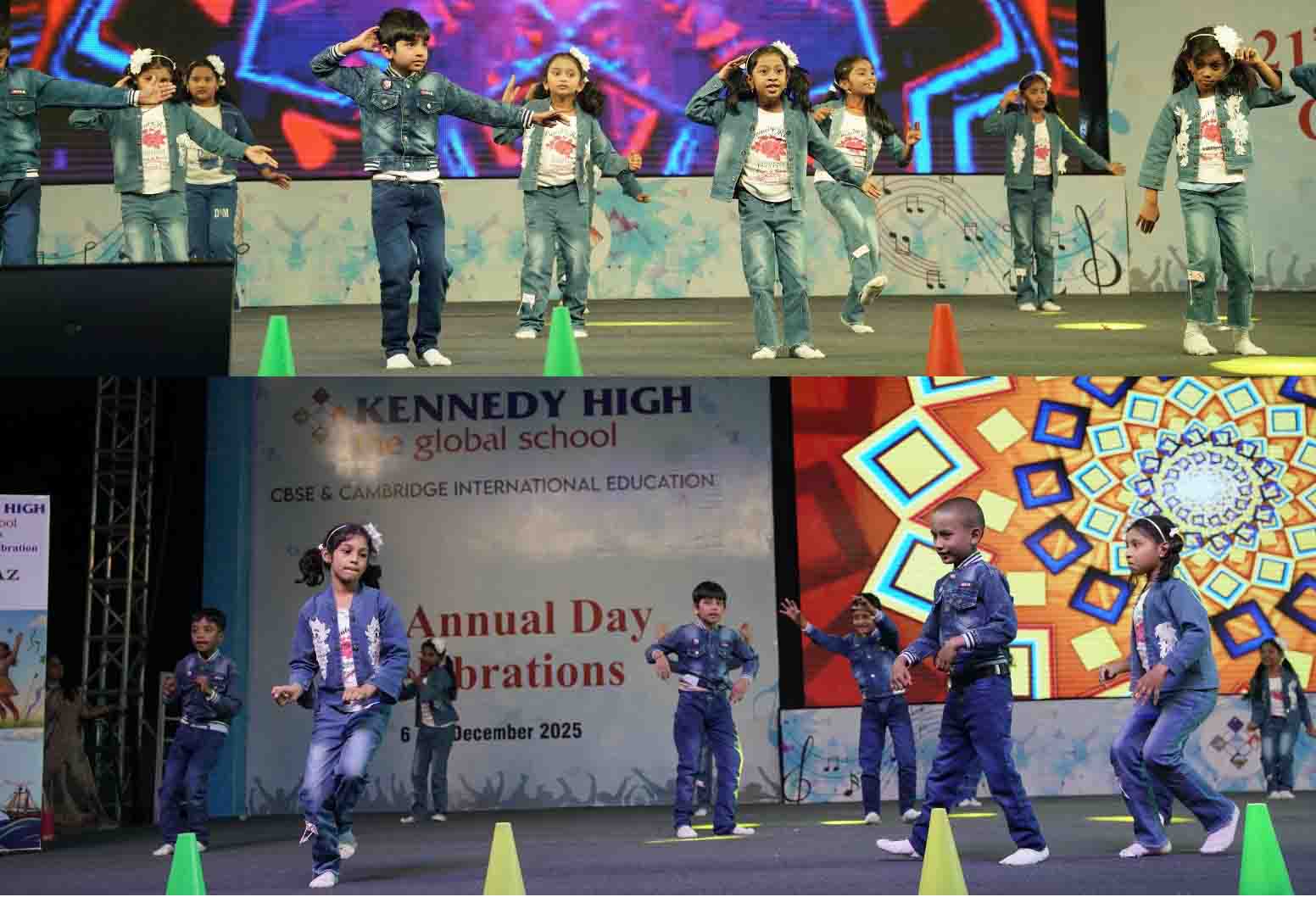 On 7 December, 2025 the students of KENNEDY HIGH the global school celebrated the 21st Annual Day with enthusiasm and zeal. The students of Pre-primary I && II along with the students of Classes I-III, CBSE and grades 1-3, Cambridge, participated whole heartedly in this grand event.