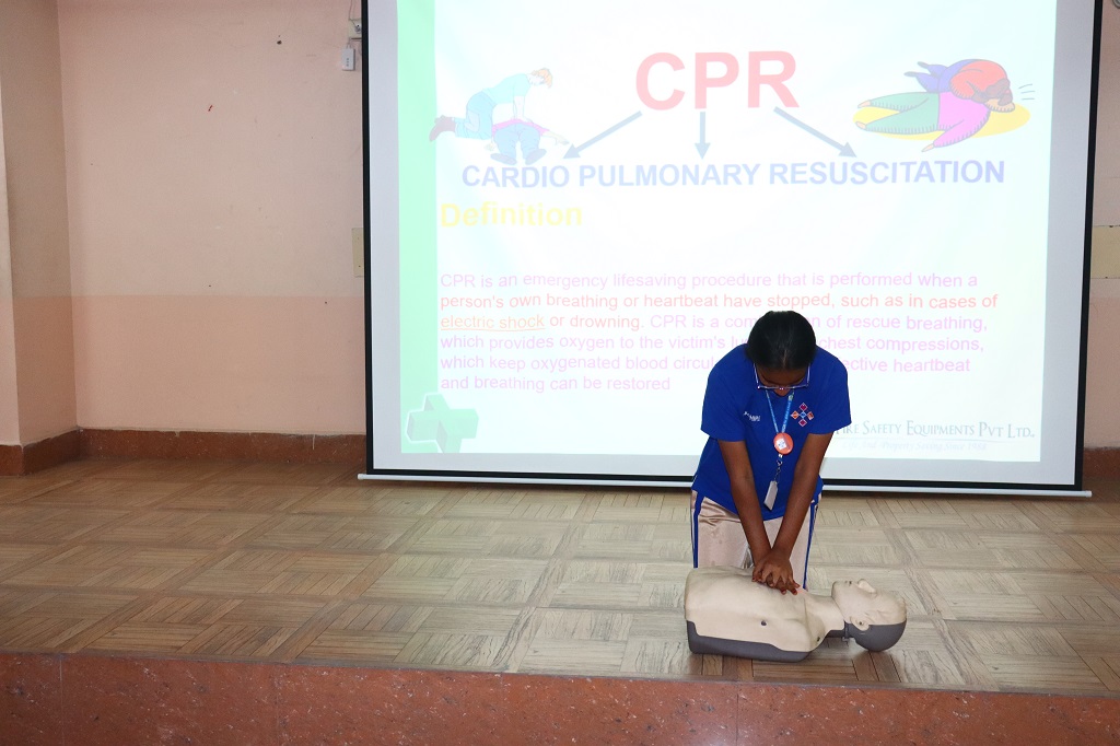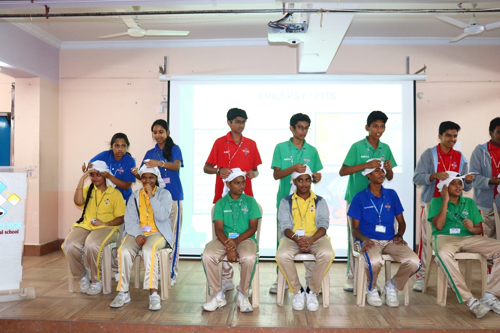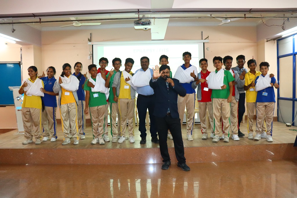 After this session, an interactive session on First Aid was also conducted for the students wherein, the expert team demonstrated how to make different kinds of slings and how to tie bandages on different kinds of wounds. They were also shown what to do if a person had an epileptic fit or a stroke. The difference between a cardiac arrest and heart attack was also discussed and the participants learnt how to give CPR. All in all, it was a very informative session and students felt empowered after this session, confident that they would be able to handle minor medical emergencies and save lives.