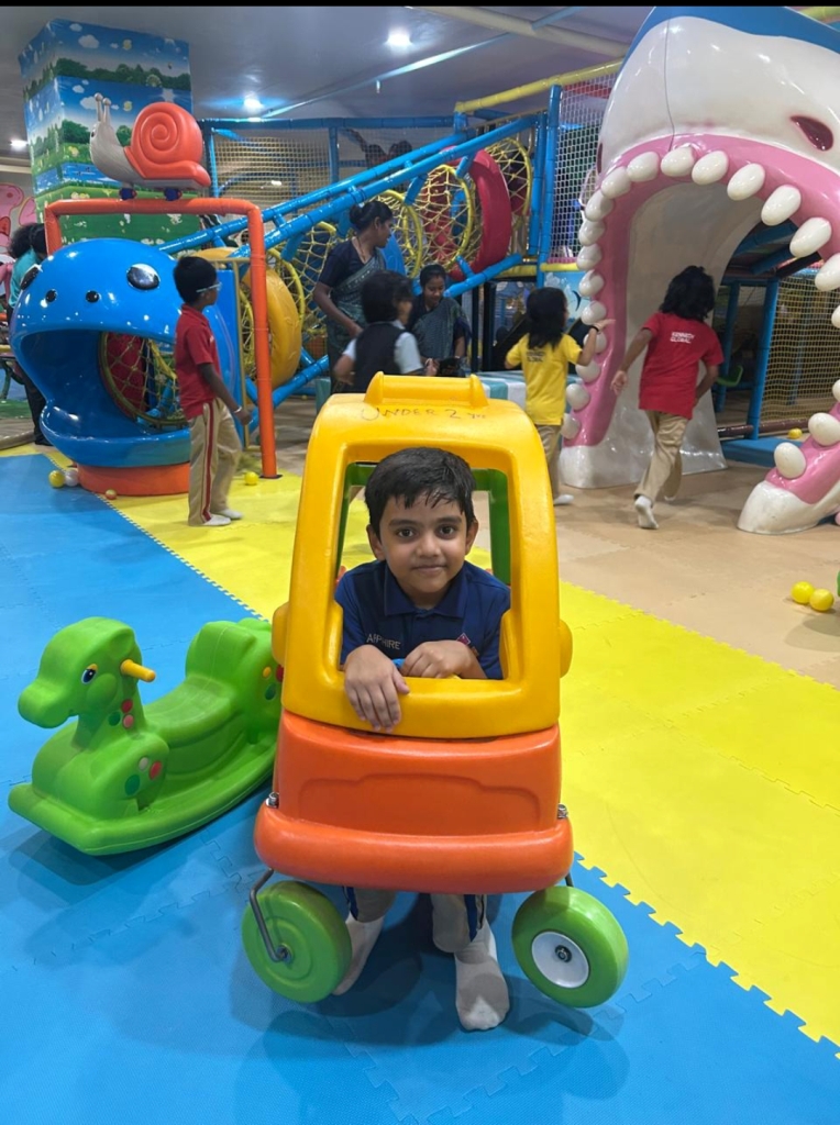 On 20 November, 2025, students of Class II were taken on a fun and energetic field trip to Sim & Sam’s Playtown, Miyapur. The children enjoyed the colourful play areas like slides, ball pools, climbing nets, soft play zones, rope tunnel, and trampoline. They stayed active, excited, and happy throughout the visit. The clean surroundings and helpful staff made the trip safe and enjoyable for everyone.