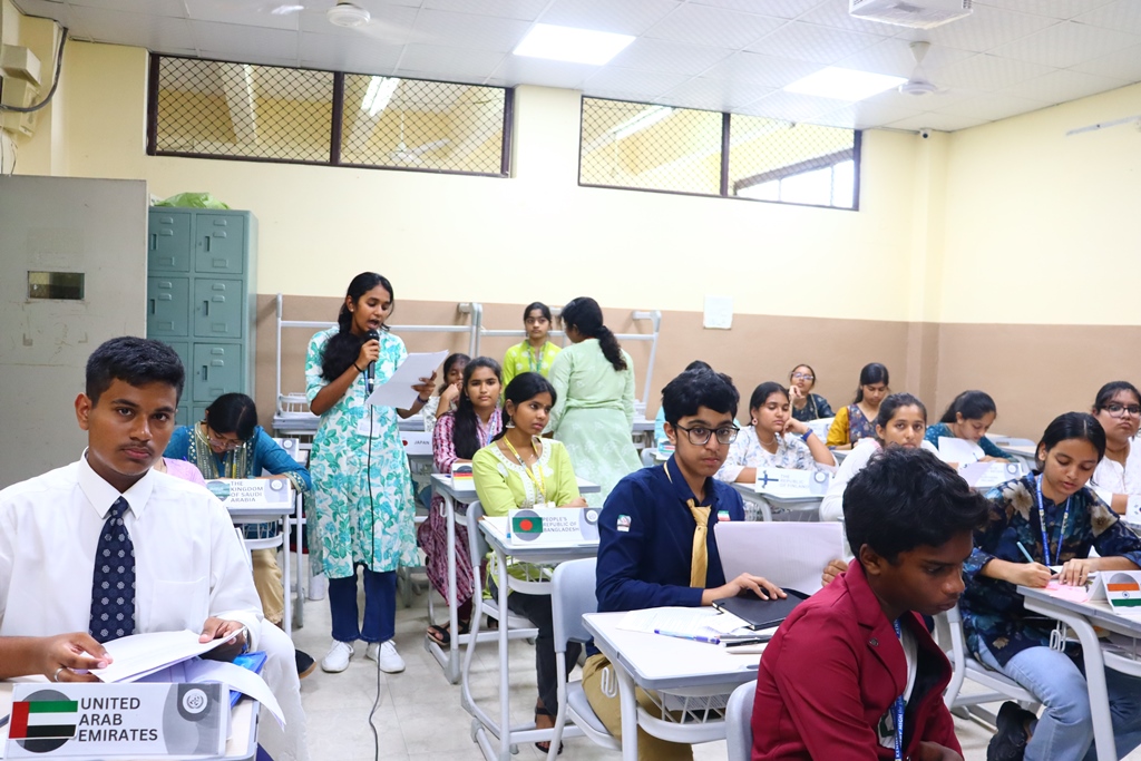 This year’s MUN featured four prestigious committees- UNHRC, UNGA, UNSC, and Lok Sabha, each fostering thoughtful debate, collaboration, and the art of negotiation. Students from classes IX to XII, CBSE and from grades 9 & 10, Cambridge International Education) participated in the KHGS Inter-house MUN 2025.