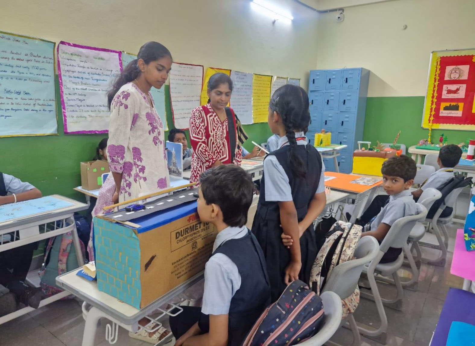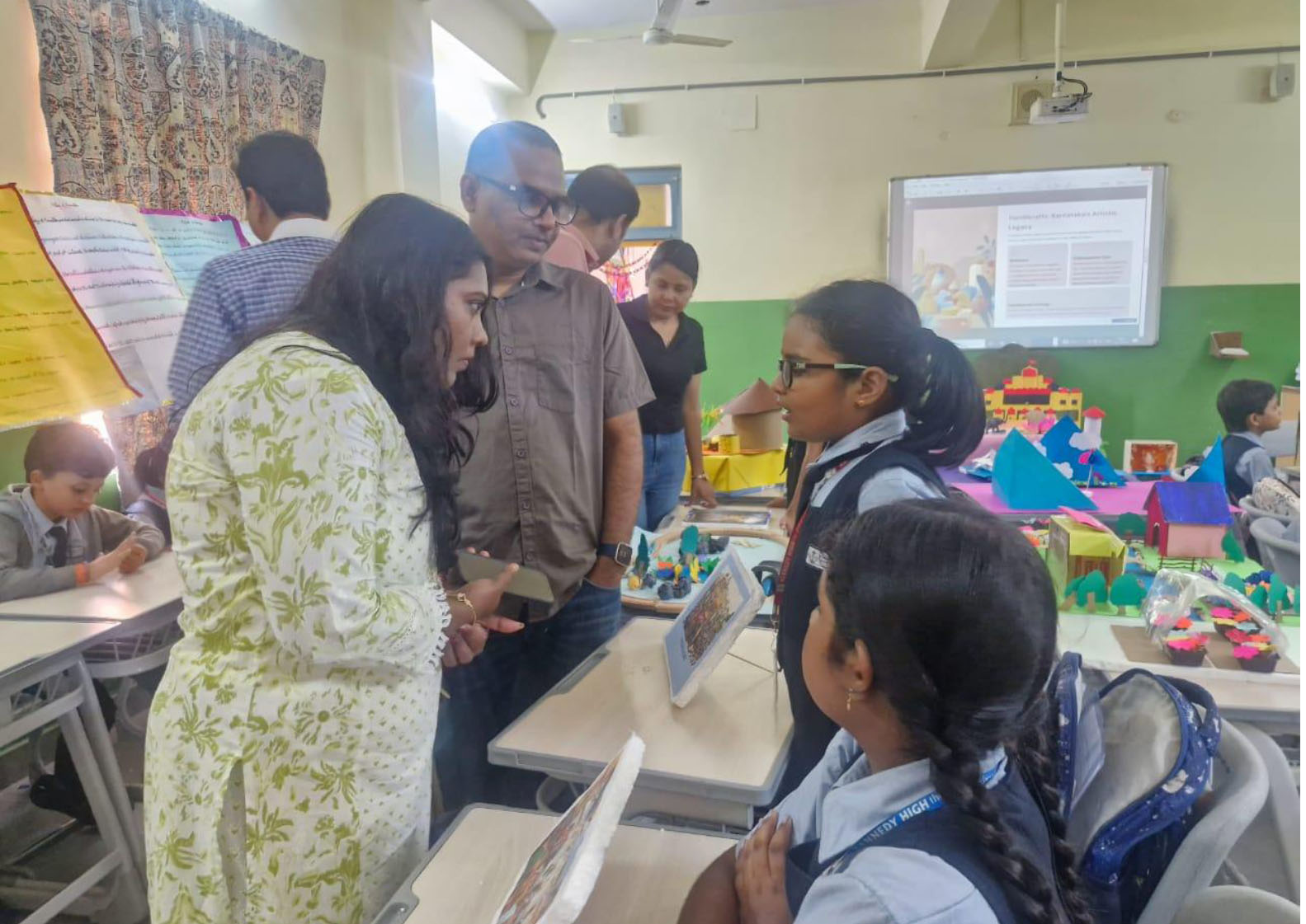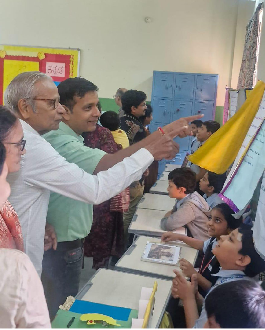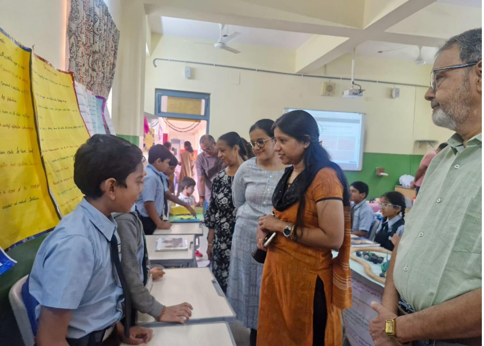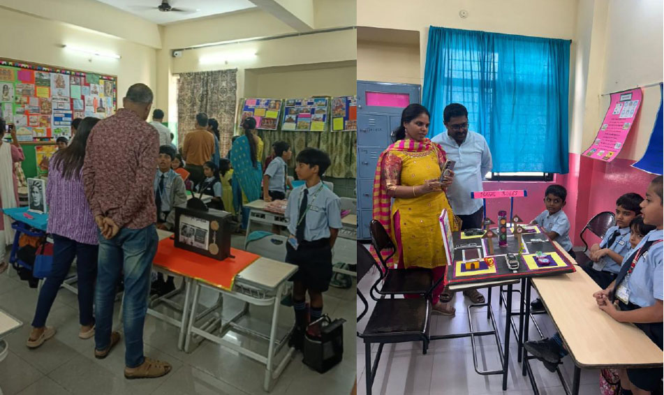 The exhibition not only highlighted the students’ academic prowess but also their innovative and practical skills. The English room exuded patriotic fervour with notable independence era authors delivering their speeches in the Live Museum and displaying a glimpse of the freedom struggle with a fiery play based on real events. Science and Mathematics presentations demonstrated scientific concepts and mathematical applications in real life scenarios. The inclusion of foreign languages like French and Hindi reflected the school’s commitment to a holistic education. Social Science exhibits explored the rich fabric of Indian handicrafts and embroidery industry that brought to the fore India’s history of self-reliance, while ICT and Robotics projects showed us a glimpse of an advanced future by highlighting students’ technological acumen. In the primary wing, SELSK projects portrayed the importance of learning emotional management to become a socially aware future citizen.