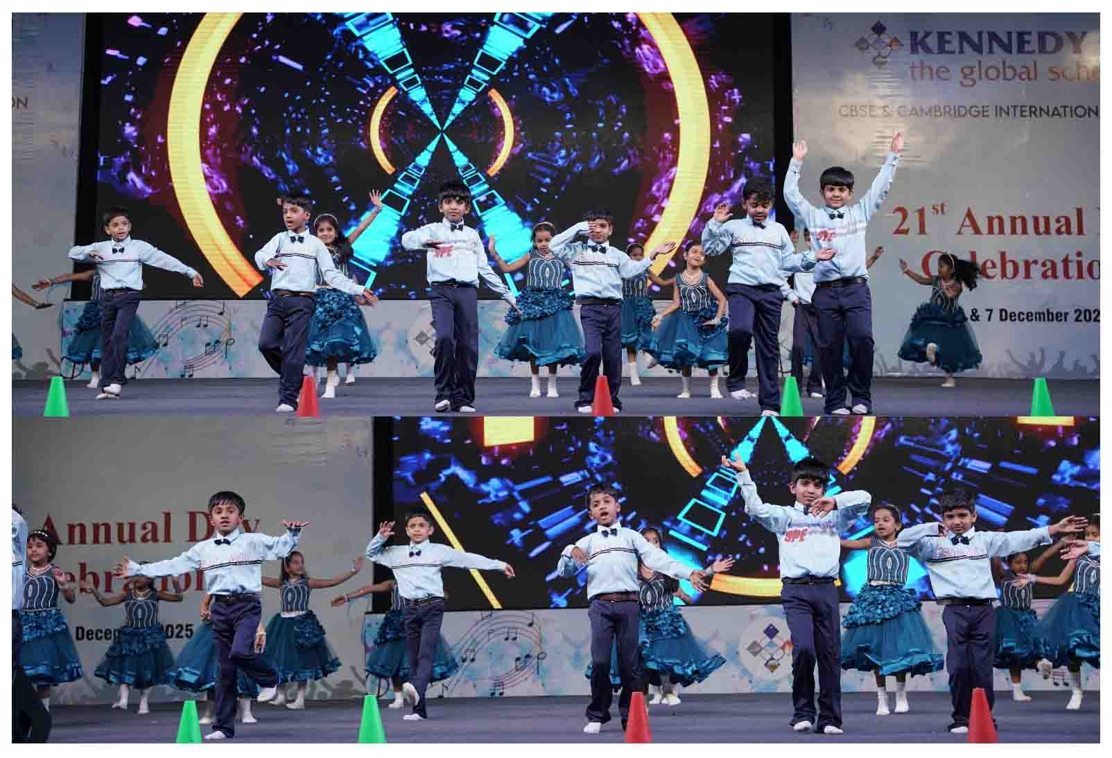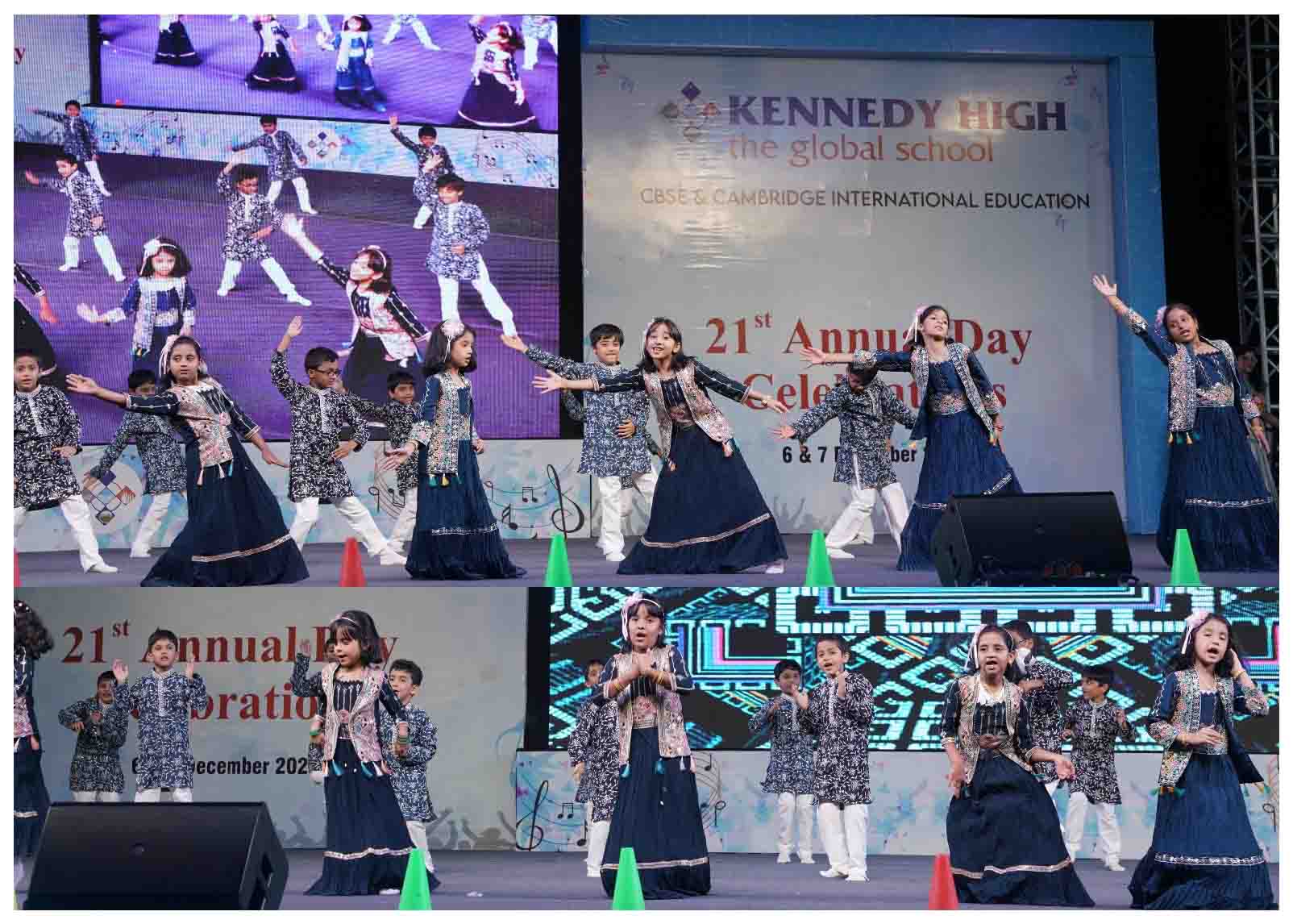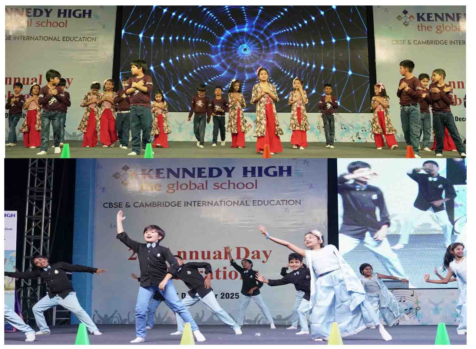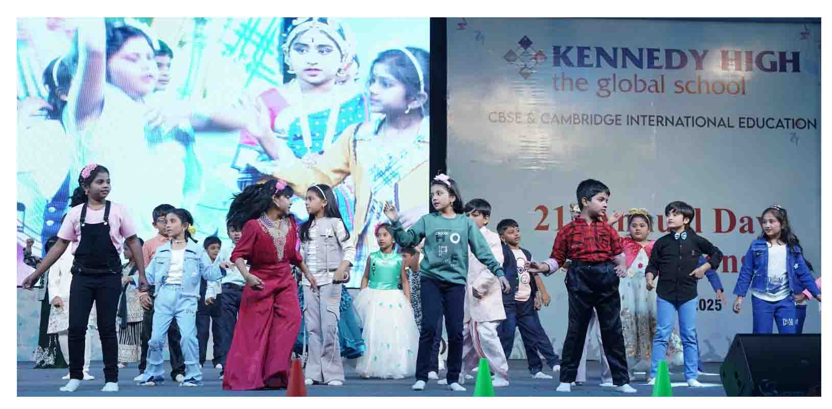 On 7 December, 2025 the students of KENNEDY HIGH the global school celebrated the 21st Annual Day with enthusiasm and zeal. The students of Pre-primary I && II along with the students of Classes I-III, CBSE and grades 1-3, Cambridge, participated whole heartedly in this grand event.