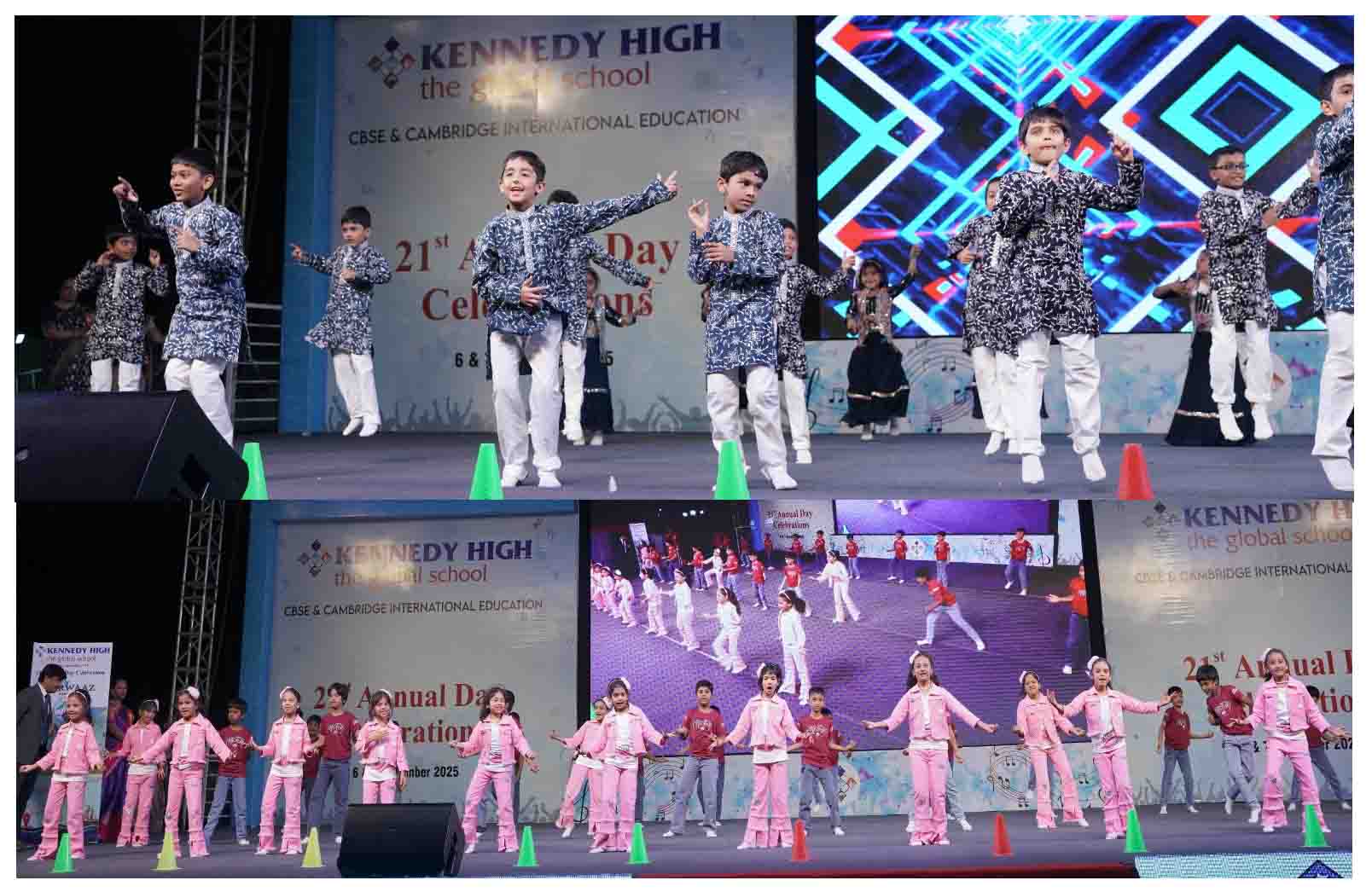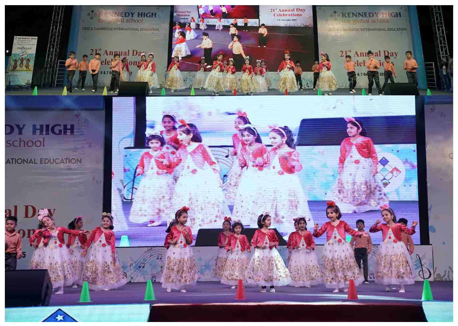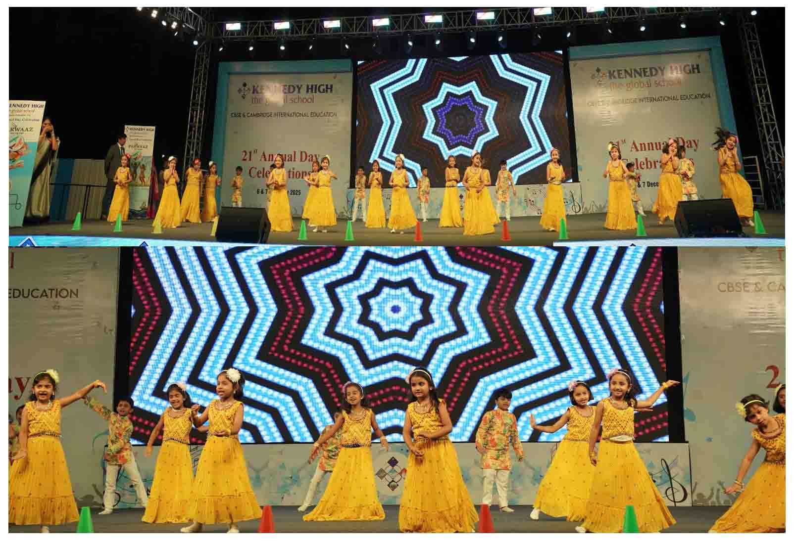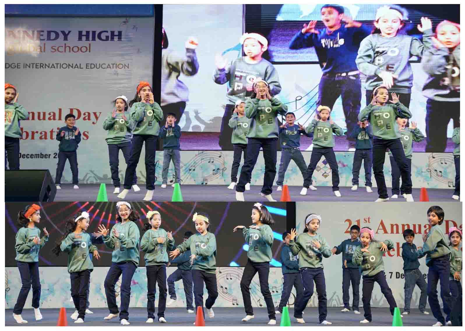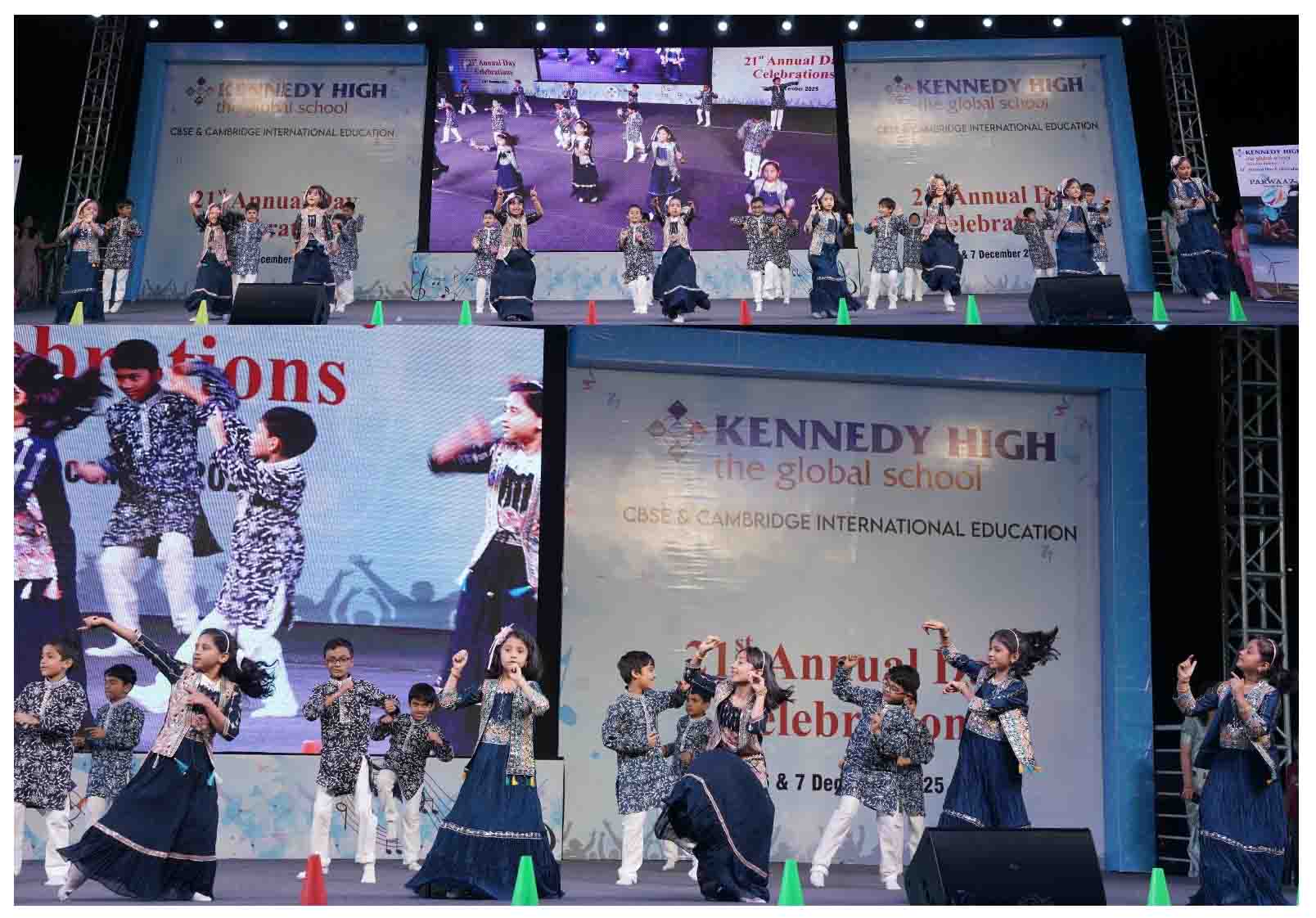On 7 December, 2025 the students of KENNEDY HIGH the global school celebrated the 21st Annual Day with enthusiasm and zeal. The students of Pre-primary I && II along with the students of Classes I-III, CBSE and grades 1-3, Cambridge, participated whole heartedly in this grand event.