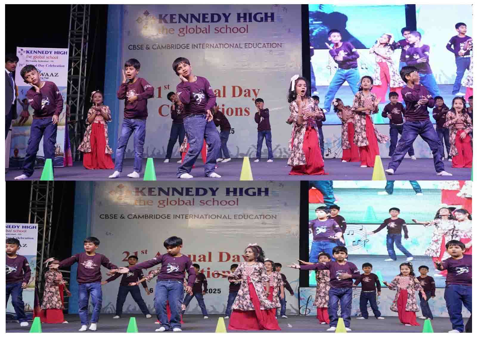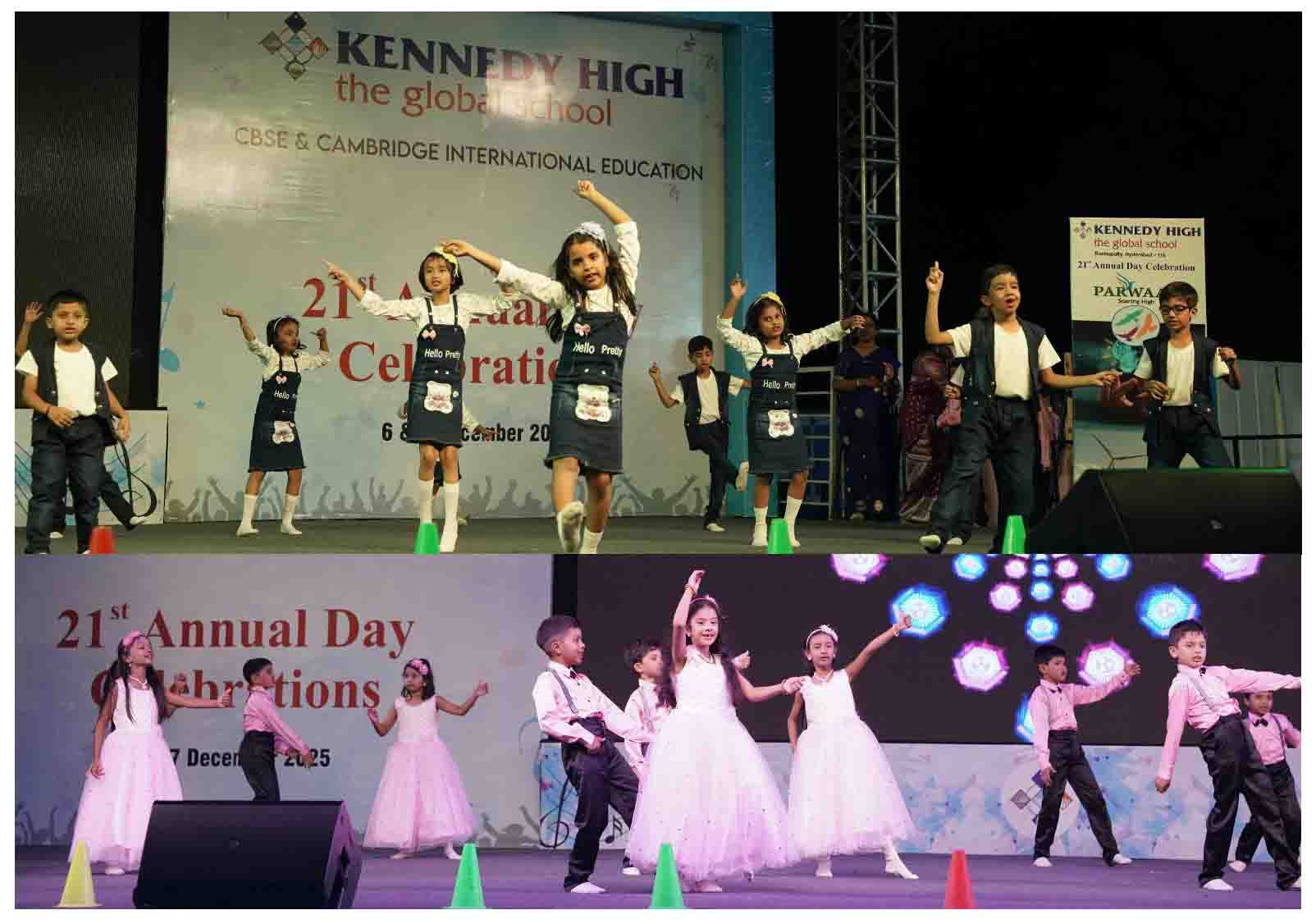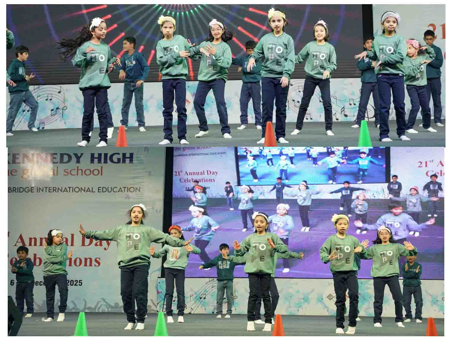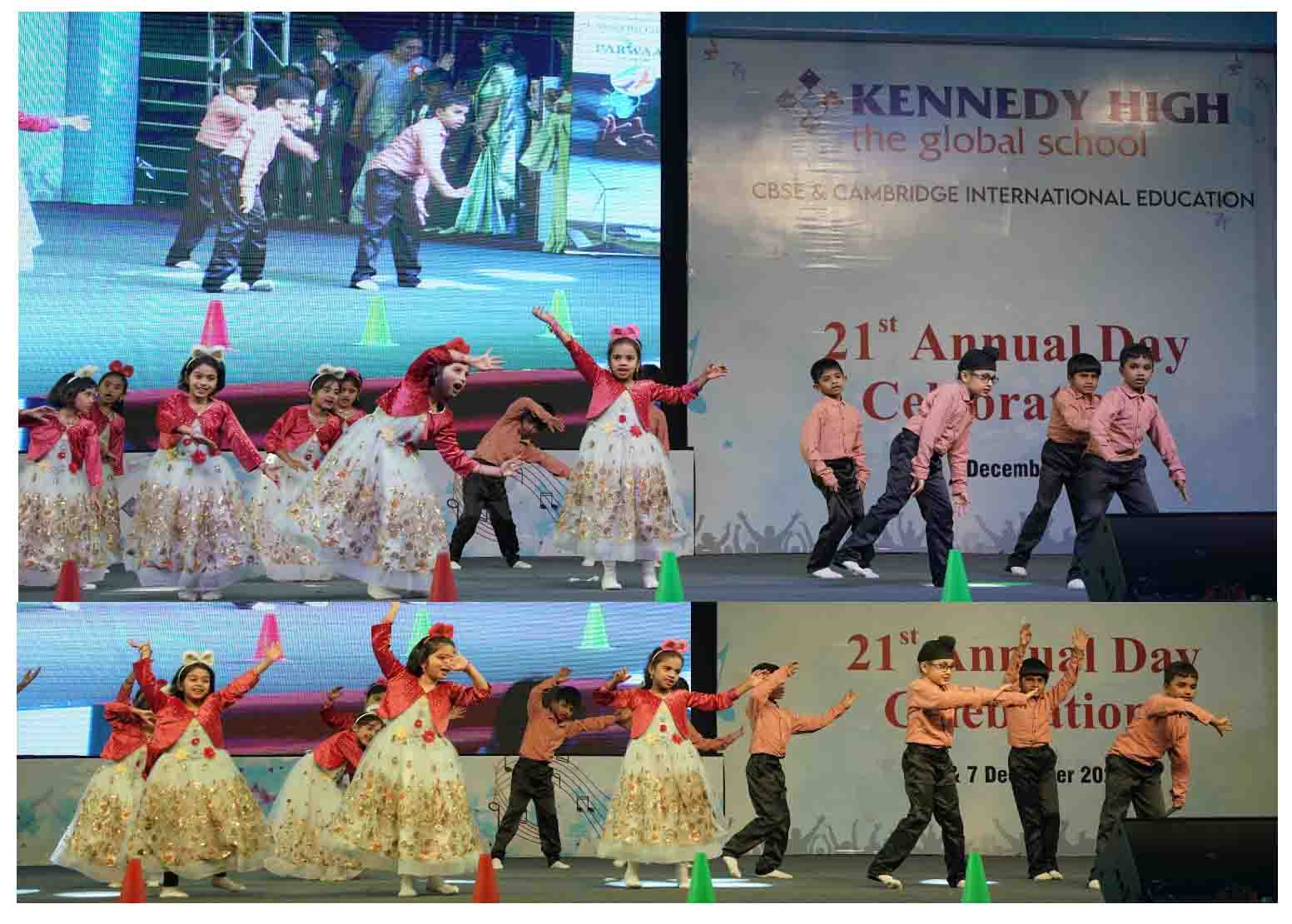 On 7 December, 2025 the students of KENNEDY HIGH the global school celebrated the 21st Annual Day with enthusiasm and zeal. The students of Pre-primary I && II along with the students of Classes I-III, CBSE and grades 1-3, Cambridge, participated whole heartedly in this grand event.