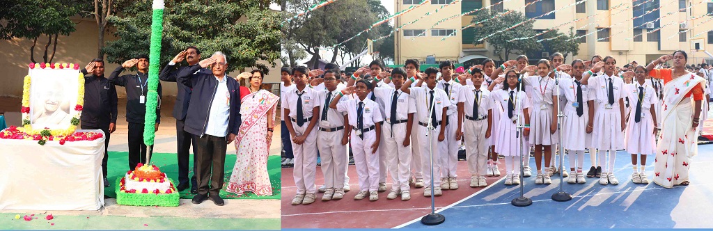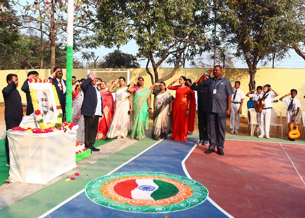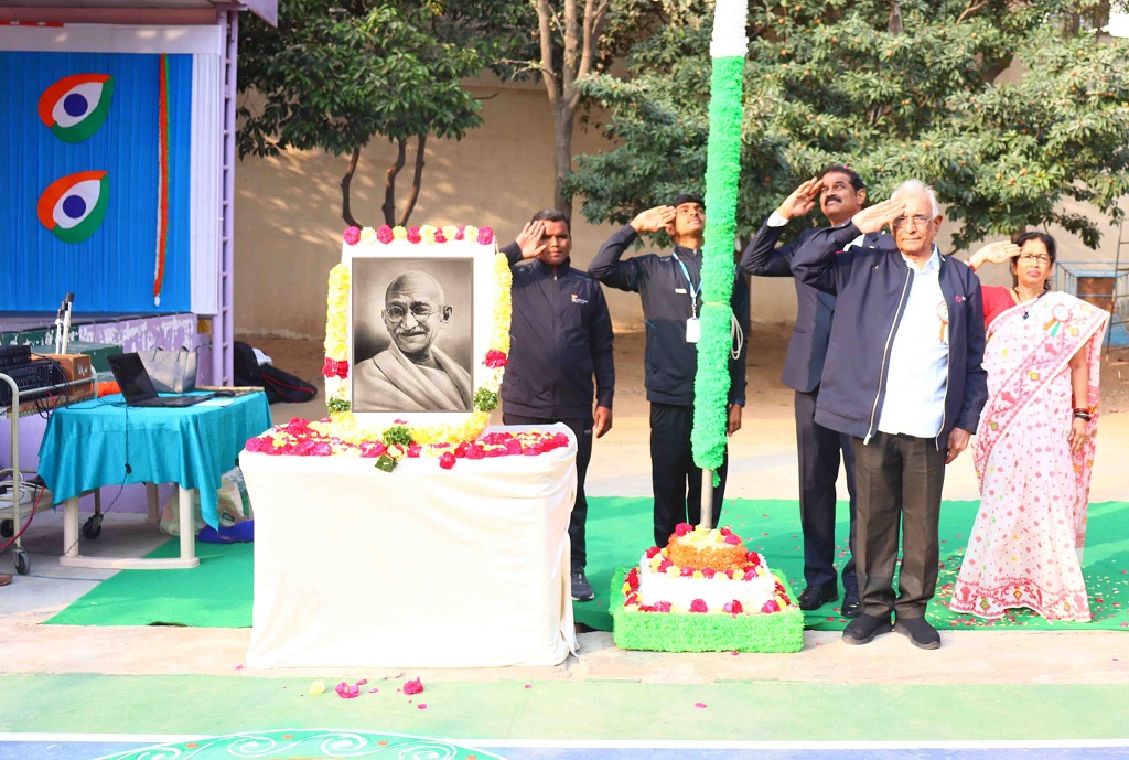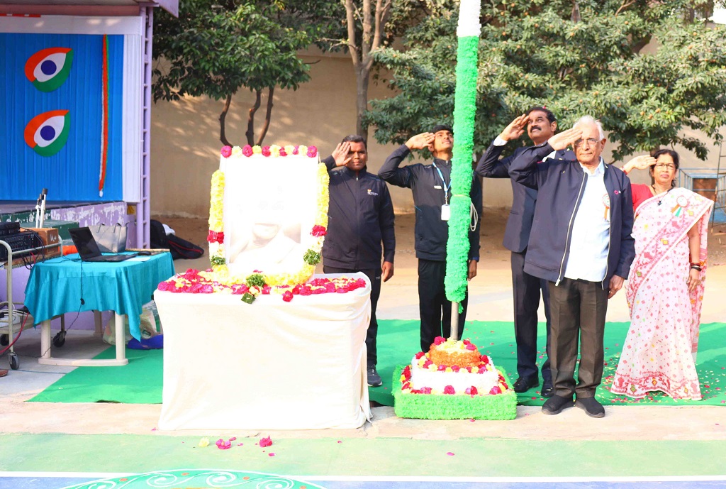 The celebration commenced with the ceremonial unfurling of the National Flag by President, Sri B. Subba Reddy, accompanied by the Managing Director, Commander Sri N. Krupakar Reddy, and the Academic Director & Sr Principal, Ms. Rajyalaxmi Bhat. This was followed by singing of the National Anthem.