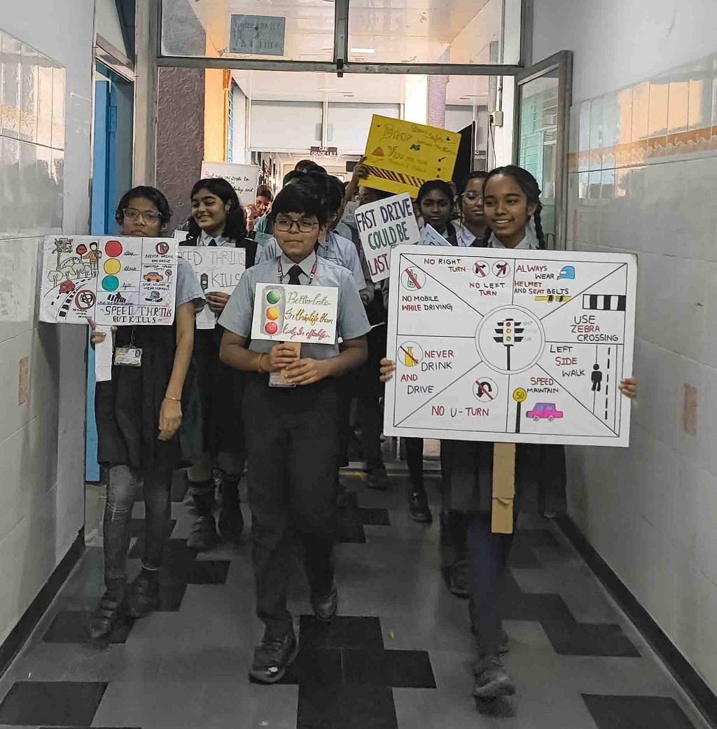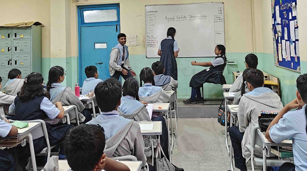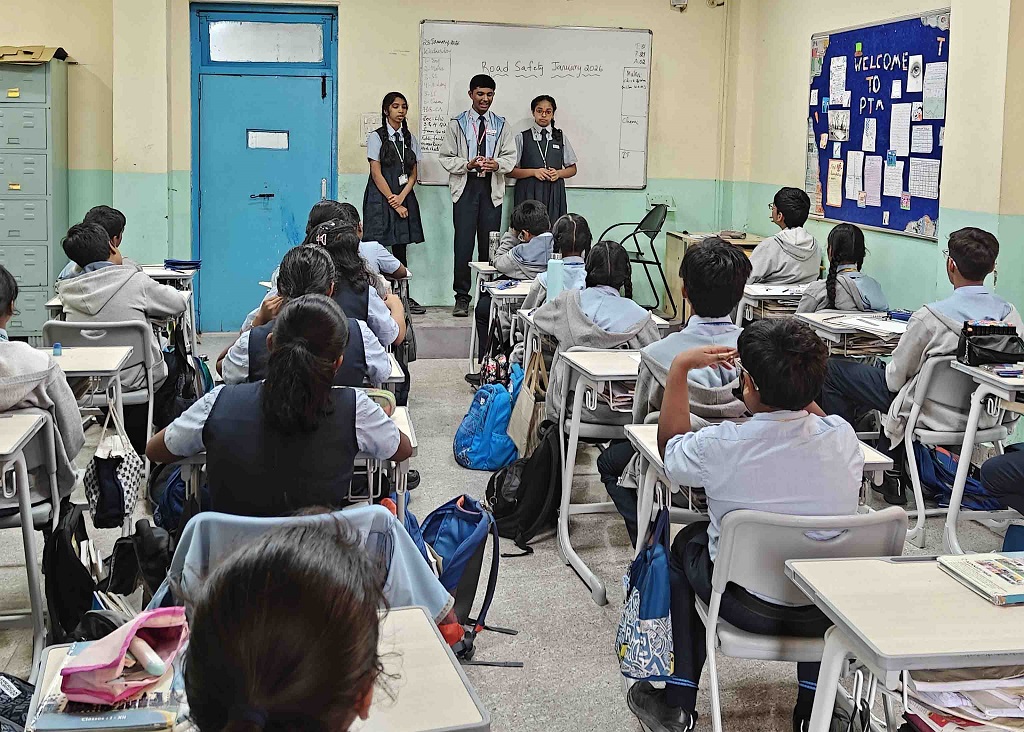 Further, on 28 January 2026, Peer Educators of Class VIII first took part in a rally on Road Safety, where they chanted slogans to spread awareness. Following this, they conducted engaging classroom sessions for their peers. Through roleplays, they addressed issues such as road rage, drunken driving, and neglecting safety measures. They concluded the sessions with short activities, like a quiz and games such as hangman on road safety. These sessions and activities instilled a strong sense of responsibility and awareness about road safety among the students.
